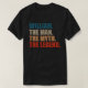 I give wanted to give this a 4 instead of a 5 because these Basic DARK T0shirts run unexpectedly SLIM or Narrow. Which is great if you do not have a potbelly, but I have a paunch. It isn't the shirt's fault that I've got a beer belly. The design and shirt itself is a quality cotton shirt. The color is more of a deep purple, but still a very pretty color. The Basic DARK T-shirts run a bit SLIMMER than the Basic Ts. The neck is a fraction narrower (or seems to be narrower) also. I'm a paunchy middle-aged woman and my neck is 12 inches (31cm) thick and the neckline fell about the same as in the photo of the man, and I had the desire to tug it a bit. So if you're a thick necked man or like loose shirts, be aware these are slimmer shirts. Once I get rid of my lockdown paunch it'll look great. The shirt washed well in cold water with no apparent bleeding. We don't have a dryer, so it hung dry. Did not shrink. Love the colors and the design. The design looks smaller on my shirt than it does on the model on-line. But still, it looks good on the shirt. The printing looks as it does on the model, just the size seems fractionally smaller. Washed garment in cold water, hung dry and design appeared unaffected.