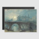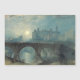 Alnwick Castle . Joseph Mallord William Turner (1775 – 1851). Cute night landscape in dark blue tones. In the foreground is a group of deer. In the middle there is a bridge over the river. The moon is in the sunset sky. Reproduction of famous works of art images in the public domain.