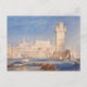 Rhodes. Joseph Mallord William Turner (1775 – 1851). A lovely seascape in pink and blue tones. In the foreground are boats and ships in the bay near the city walls. in the middle ground there is a high tower. In the background there is a city with stone houses. Reproduction of famous works of art images in the public domain.