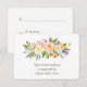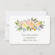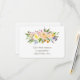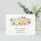 This pretty wedding response card features a tangerine, gold, green, and violet watercolor bouquet image on a white background. Your custom text is in medium grey. The back of the invitation is white with more custom text fields. This card matches the Willow and Floral Formal Wedding Invitation in our store.