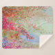 The Willow blanket has a watercolor style print with a multi-coloured theme of blues, fuchsia, pinks, and greens.