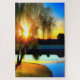 Willow tree at sunset by the pond jigsaw puzzle