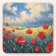 This digital illustration evokes a vibrant field of red poppies captured in the middle of the movement, with a clear tribute to Vincent van Gogh's post-impressionist style. The work is performed with a bold impact technique, where the color is applied with thick and textured strokes that simulate the whisper of the wind on the stems. The use of intense red contrasted with vibrant dark green and blue colors reflects the emotional palette of the master. The general feeling is one of energy and wild nature, perfect for fans of Van Gogh and expressionist art with a heavy emotional charge.