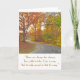 Greeting card features photo of a winding path through a woods with Fall colour. The text reads, "There are always two choices. Two paths to take. One is easy. And the only reward is that it's easy." This text is customisable, so could be replaced with a message of your own. Card inside is blank. A good card to send to those who are facing decisions/choices.