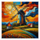 Windmill at sunset 10 poster