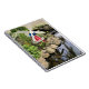 Very cute windmill garden decoration next to a pond. You can see the reflection in the water. Photo taken April 2019 in Woodburn, Oregon.