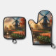 Windmill in Dutch Countryside by River with Tulips Oven Mitt & Pot Holder Set