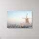 Canvas landscape print of a traditional dutch windmill covered in snow in a rural landscape in Aarlanderveen, the Netherlands, in winter in the warm early morning light at sunrise. A great piece of decoration on your wall!