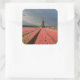 Windmill with pink tulips in spring square sticker