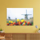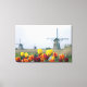Windmills and tulips along the canal in canvas print
