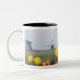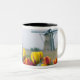 Windmills and tulips along the canal in Two-Tone coffee mug