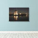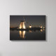 Canvas print of a landscape with multiple windmills, illuminated at night, with reflection in the still canal water in Kinderdijk, the Netherlands. Great decoration on your wall!
