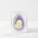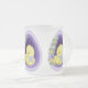 Purple Easter window egg has a little yellow chick resting inside with butterfly and flower accent.