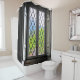 ADD A "WINDOW" WITH A VIEW TO YOUR BATHROOM DECOR WITH THIS SHOWER CURTAIN FEATURING A PHOTO OF A TALL WINDOW WITH OPENED INDOOR SHUTTERS. PHOTO WITH DIGITAL EFFECTS APPLIED FOR A PAINTERLY LOOK.