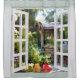 A series of shower curtains with a scene of outdoor landscape seen through multi-paned window with curtains. Give your bathroom the airy look of a picture window with beautiful scenery.