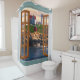 A series of shower curtains with a scene of outdoor landscape seen through multi-paned window with curtains. Give your bathroom the airy look of a picture window with beautiful scenery.