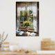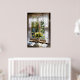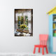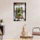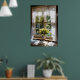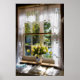Window with lace curtain and tulips poster