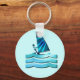 Windsurfing graphic design with blue waves keychain.
