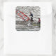 An art design of windsurfers in the sea in Aberdyfi Wales UK.