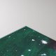 Winter night depicted in a painting showing the night sky in emerald green with dark trees, moonlit clouds and stars. Constellations are seen rising in the east, both Gemini and Orion are on their sides as they begin their journey across the sky. Wind is blowing silvery mist in moonlit patterns through the cold air.
