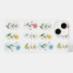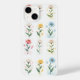 A cell phone case with a stylish design and flowers blowing in the wind.