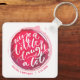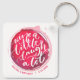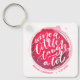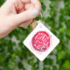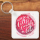Round keychain features fun text "Wine a Little Laugh A Lot" on a red wine stain - personalised with any information. Keychains make memorable gifts for family and friends or create for yourself.