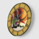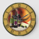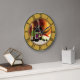 Exquisite wine and cheese custom wall clock featuring three layers of elements; gold background with green and brown trim, three wine bottles and a wedge of cheese, clock numbers. We left space under the wine and cheese if you would like to add text. Enjoy!