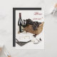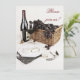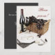 Wine and cheese dinner celebration invitation featuring an elegant yet casual setting with wine bottle, wine glass, a plate with cheese, corkscrew and grapes.