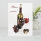 Wine and cheese dinner celebration invitation featuring an elegant yet casual setting with wine bottle, wine glass, figs, and grapes.