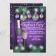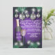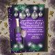 If you're looking for a festive and beautiful Christmas holiday invitation, look no further! This holiday invitation card has the design of garland, Christmas twinkle lights and silver bulbs. The background is purple. And then there is a design of a wine bottle and wine glass. It's charming, fun and your guests will love it!
