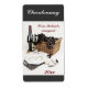 Wine bottle, wine glass, a basket with grapes and a corkscrew wine bottle label