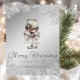 Elegant silver Christmas tree branches and a wine glass with bow on silver background. Ideal card to send from your business/commercial or organization or from your family. . . Personalize by putting your name after from the on the front of the card....