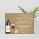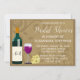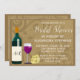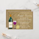 Elegant bridal shower invitation with wine and cheese vintage tuheme. Rich and elegant modern contemporary wine and cheese tasting party invitations!. Sandy brown with wine bottle, glass and swiss cheese sample, with swirly vines background. Customise online with your event details.