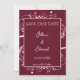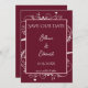 Personalise a unique wedding announcement with a Wine Flourish Save the Date. Announcement design features an elegant leafy flourish with matching coloured background and text you can personalise with your wedding date details. Additional save the date announcement available for this design in a variety of colours.
