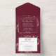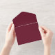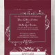 Invite guests to your upcoming wedding with a Wine Flourish All in One Wedding Invite. Invite design features an elegant leafy flourish with matching coloured background with a perforated response card. Personalise with the groom and bride's names along with the wedding date and location. Additional wedding stationery available with this design as well.