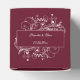 Personalise a unique wedding favour box for guests with this Wine Flourish Wedding Favour Box. Favour box design features an elegant leafy flourish with matching coloured background. Personalise with the groom and bride's names along with the wedding date. Additional wedding stationery available with this design as well.