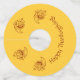 Thanksgiving greetings with image of full horn-o-plenty. Text and images in brown, on golden background.