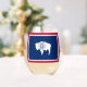 Wyoming flag wine glass, American bison drinking glass, patriotic state emblem gift, Western heritage wine accessory, Cowboy State table decor, rustic red white blue glassware, cultural identity home accent, state pride wine cup, elegant USA flag drinkware, stemmed glass with state flag, high quality printed wine glass, frontier themed dinnerware, bold Western themed goblet, decorative Wyoming patriotic glass, symbolic bison silhouette glass, regional pride table accessory, unique state flag drinkware, expressive and functional wine glass, patriotic celebration home piece, iconic USA themed wine gift.