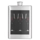 Wine glasses with red wine on black hip flask
