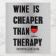Funny custom wine label with the quote "Wine Is Cheaper Than Therapy".