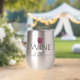 Designed with type, the ‘I” in WINE is the stem of the wine glass. This tumbler is available in “Stainless Steel”, show here and white.