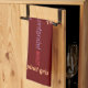 This unique kitchen towel for wine lover's features an intricate text design showcasing the names of iconic wines, including Chardonnay, Merlot, and Riesling, artfully arranged to form a wine glass silhouette.