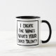 Funny slogan on a mug that says "I Make Fine Wines. what's YOUR super talent?". Two Tone Mug for a Wine Maker. Black and white bold text.