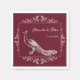 Personalise a unique napkin for your wedding reception or bridal shower guests with a set of Wine Peacock Flourish Bridal Shower Napkins. Napkin design features an elegant peacock adorned with flourishes. Personalise with the groom and bride's names along with the wedding date. Additional wedding stationery available with this design as well.
