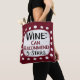 A funny typographic design that says "Wine: Can Recommend, 5 Stars". It's black and burgundy red text on a white rectangle with funky, playful white dots surrounding it, all on a burgundy background.
