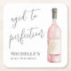 Sophisticated Wine Aged to Perfection Square Paper Coasters. These elegant square coasters feature a large watercolor pink and grey wine bottle on the right side for a contemporary, stylish look. On the left, “Aged to Perfection” is displayed in graceful script, with the birthday person's name and age placed at the bottom left in a chic mix of serif and script fonts. The clean white and grey background keeps the design timeless and refined. Perfect for using at the party, these coasters add a polished and sophisticated touch to any birthday celebration.