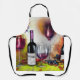 Colourful AI generated digital art apron "The Wine Tasting" features a variety of wine glasses and red wine bottle. Perfect for trips to wine country!
