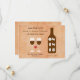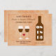 This modern card is ideal to announce a wedding to be celebrate it in a vineyard, or a wedding with a wine theme. It’s also great for wine lovers. Features a wine bottle and two wine glasses on a textured background and a red heart. The date is written on the bottle. Add your own wording.