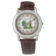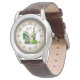 This retro-style watch features a graphically designed wine bottle, glasses, and grapes in the centre and the text "wine time" A fun accessory for anyone who loves to drink wine.