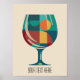 An abstract illustration of wine glasses in a stylish mid century modern design. This bright and contemporary design is perfect for any room or home bar with a bold colour palette and aesthetic design. The geometric design on a classic elegant glass adds interest and will make your wall art stand out. Great as a statement or focal point and for adding a splash of colour to your walls. Customisable text to make your poster your own!